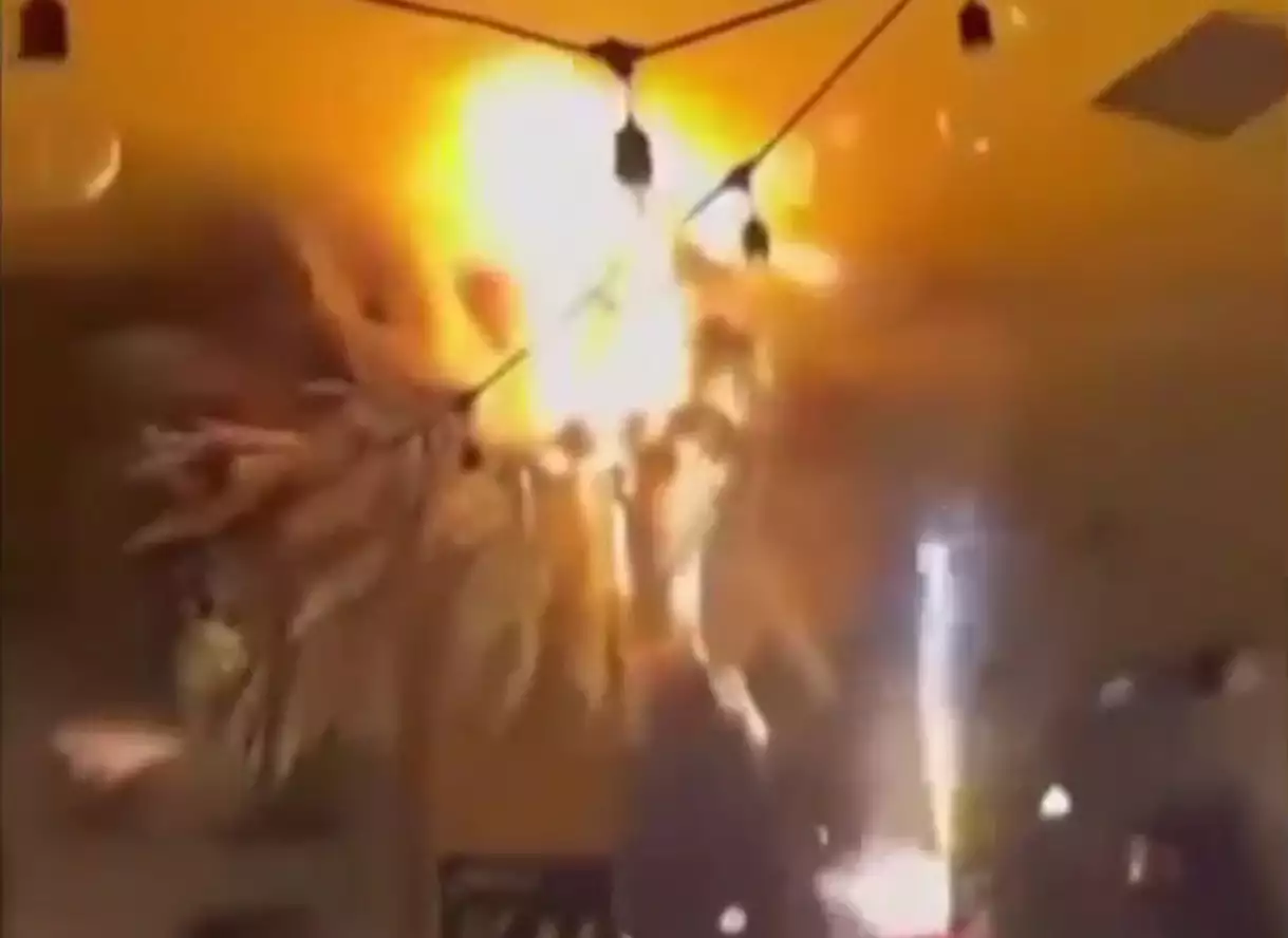 وأظهر مقطع فيديو للحادث لحظة اندلاع النيران عندما اشتعلت زخرفة سقف الماسة فوق الكعكة التي كان النادل يحملها لمجموعة من الحاضرين. وسرعان ما امتدت النيران داخل الحانة ما أثار حالة من الذعر بين الحاضرين الذين هرعوا للبحث عن مخرج.