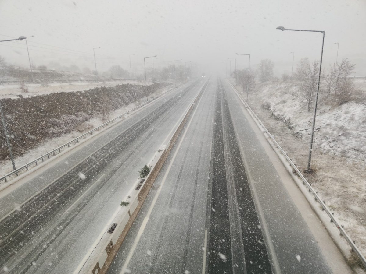 تساقط الثلوج الكثيفة يكسو الطريق السريع الوطني خارج سالونيك