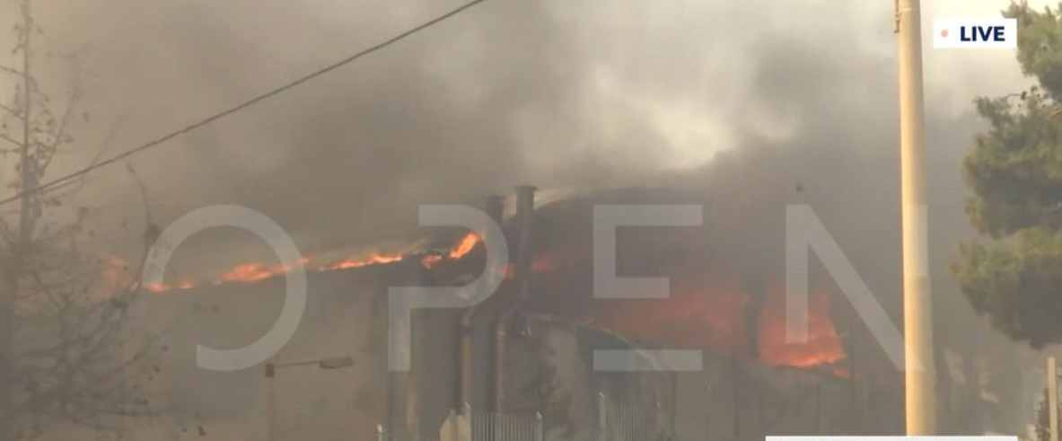 حرائق أتيكا اشتعال النيران في مدرسة بنيا بنتلي وإجلاء المخيمات في آغيوس أندرياس