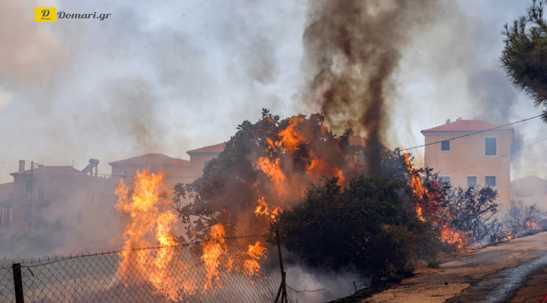 ويمكن رؤية دخان كثيف متصاعد بفعل الرياح القوية في المنطقة. وقالت إحدى السكان الفارين لتلفزيون ERT الحكومي إن منزلها اشتعلت فيه النيران.