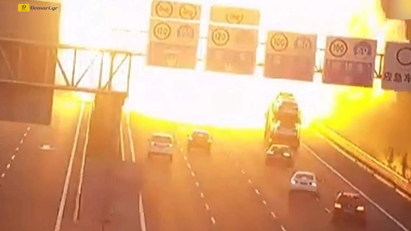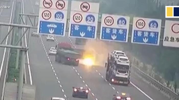 انفجار مرعب على طريق سريع في الصين (فيديو)