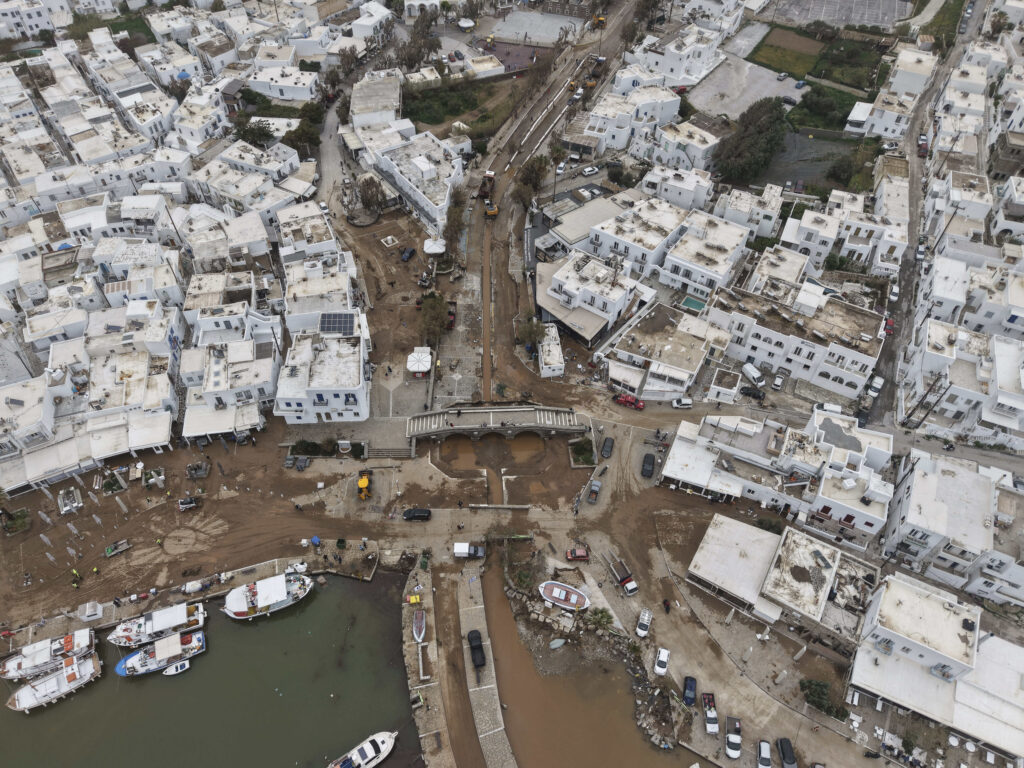 أما في جزيرة باروس فقد تسببت الأمطار الغزيرة في تحويل الطرقات إلى أنهار جرفت المركبات خصوصا في منطقة ناوسا التي تعد من أبرز الوجهات السياحية في الجزيرة. كما وامتلأت الشوارع بالطين والحطام فيما تعرضت البنية التحتية بما في ذلك شبكة الطرق لأضرار كبيرة ما دفع السلطات إلى إغلاق المدارس في اليوم الأول من أبريل.